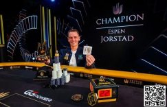 去年的世界扑克锦标赛主赛冠军Espen Jorstad在此次的传奇扑克伦敦站$40,000神秘赏金赛中拔得头筹。该赛报名人次133,Jorstad击败了多位顶尖牌手,包括单挑对手Phil Ivey。这位来自挪威的世界冠军最终斩获奖金$639,000(还有赏金),这是他自去年WSOP主赛后第一次赢得线下锦标赛胜利。