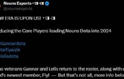“属于我们的新时代即将来临!在此要介绍一下我们队伍在2024年新赛季的核心成员组。他们就是Gunnar,Lelis以及Fly。我们的老将Gunnar和Lelis回归到了队伍当中,跟他们一同加入的还有最新成员Fly!