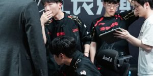 龙八国际4月14日讯 今日LPL第二赛段JDG与FPX战至1比1平,在第二局比赛结束后官方直播间数据面板显示比分仍为JDG 0-1 FPX。