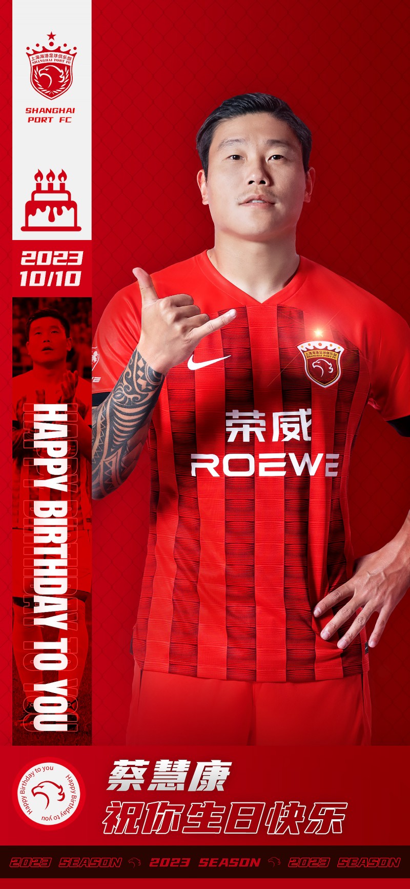 今天是海港球员蔡慧康的生日,让我们祝他生日快乐??