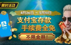 【EV扑克】限时活动:4/26-5/10支付宝存款手续费全免 不限金额